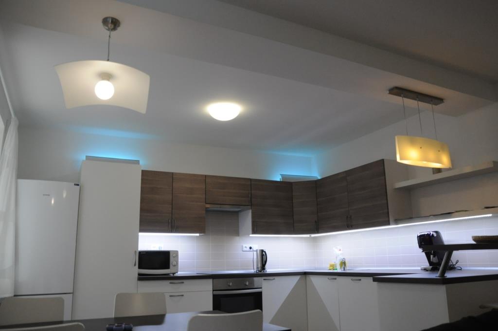 Schéma možného nasvícení stropu místnosti zdrojem UV světla: